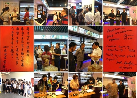 自设展以来,人体科学馆接待了众多前来观展社会各界群众,科普工作成效显著。其中有阔别母校三十余载的上医老校友、有曾多次来访对医学充满浓厚兴趣的微电子专业的老先生、有带着喜糖来的新婚夫妇、有随家长前来的医二代、有正在规划未来职业方向的高中学子、有前来我校调研访问的外校医学院同仁、有复旦大学基础医学院和其他院系师生以及广大的市民等。一份份饱含深情的留言、一双双求知的眼神、一次次亲切的交谈……..这些都将成为此次人体科学馆科技节活动的难忘而意义深远的永恒记忆。同时,科技节活动期间,正值临床解剖中心二期工程施工,在我们的邀请下,施工队的工人师傅欣喜地走进了我们的人体科学馆,在馆长周国民教授严谨细致又不失生动风趣的热情讲解中,感受着生命的奥秘。目睹这一场景的一位教授感言:“教授为工人兄弟讲科普,一丝不苟!”