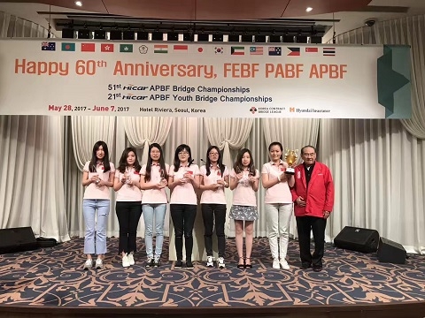 本次亚太桥牌锦标赛于5月29日开赛,经过8天的激烈争夺,6个组别的冠军全部产生。中国青年男队,青年女队均在比赛中提前一轮夺冠,并将在明年中国吴江征战世界青年桥牌锦标赛。