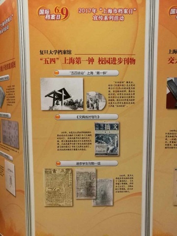 又及,为庆祝国际档案日,配合上海市档案系统红色珍档展示活动,2017年5月4日,复旦大学档案馆开展了“红色记忆:复旦上医的家国情怀”——复旦大学馆藏红色珍档(1919-1949)发布活动。此次发布的红色珍档包括:敲响上海“五四”第一钟的复旦老校钟、国内最早刊登《毛泽东自传》的《文摘》杂志、宣传抗日救亡的一组进步学生刊物。红色珍档重现光荣历史,让广大复旦师生重温信仰的力量,牢记历史使命,强化责任担当。