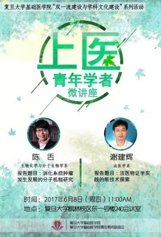 6月8日,第十期的上医青年学者微讲座举办,基础医学院约有20余位中青年教师参加。本次微讲座嘉宾为生物化学与分子生物学系的陈舌老师和谢建辉老师。两位老师的交流题目分别为“消化系统肿瘤发生发展的分子机制研究”和“法医物证学实践的新技术探索”。