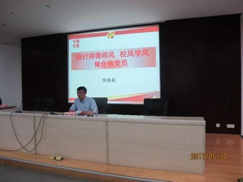 陆伟跃围绕“践行师德师风、校风学风,做合格共产党员”这个主题给全体党员讲授了一堂生动深刻的“七一”党课。带领大家重温了党章所规定党员必须履行的8项义务,强调要始终牢记党员是我们的第一身份,要带着敬畏、带着感情、带着责任去发挥模范带头作用。党员教师无论在教学、科研和管理工作中,要从大局着眼、小处着手,用求真务实、一丝不苟的精神做好每一件事,既要教学生科学知识和培养学生科研能力,还要传授学生做人的道理,为学院师德师风建设做出积极贡献。要求党员教师和党员学生要做校风学风的表率,自觉将社会主义核心价值观融入学习风气和学术风气建设的全过程。党员学生应该在知识学习、能力培养和社会责任感培育中起模范带头作用;党员教师应该在把牢学术诚信关、营造风清气正学术氛围中起模范带头作用。