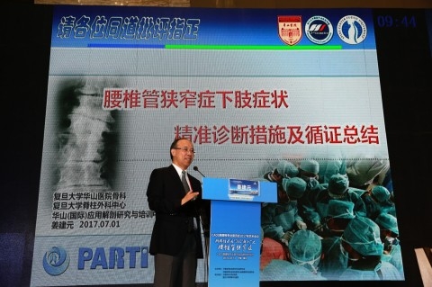 CAOS胸腰椎专委会主任委员、华山医院骨科主任姜建元教授致开幕词,并以“腰椎管狭窄症的临床分型与病理解剖”、“腰椎管狭窄症下肢症状的精确诊断措施及循证总结”为题进行了精彩演讲。华山骨科吕飞舟教授、夏新雷教授、朱巍博士、王洪立博士作为大会讨论嘉宾,在“减压方式的选择”“责任节段的判定”“重建方式的选择”等议题上提出自己独到的见解和点评。马晓生教授就“小儿麻痹症合并脊柱侧弯的腰椎管狭窄症是否需要多阶段减压融合”,分享了自己的治疗心得。