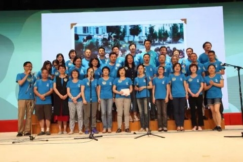 最后,到场97届校友联络员与复旦大学合唱团学生以及“复二代”们上台,齐声合唱复旦校歌。悠扬歌声中,1997届校友毕业20周年返校活动正式落下帷幕。
