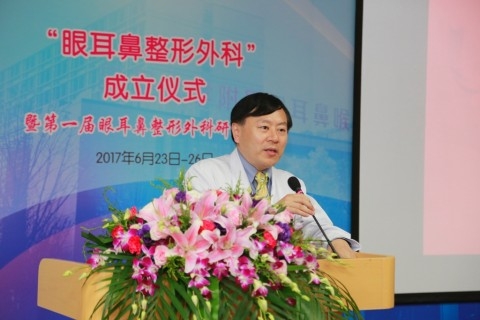 眼耳鼻整形外科主任张天宇教授感谢医院领导对科室的支持,同时也对与会者参与新学科的成立仪式表示欢迎。张主任认为,新学科的成立既是医院全方位、多学科共同发展的要求,也是为了各类眼、耳、鼻先天性畸形性疾病多发,创伤和手术后畸形以及五官整形美容的巨大医疗需求,他表示科室有信心接过重担,接受考验。眼耳鼻整形外科将把建立“以畸形性疾病治疗为基础,通过多学科结合再造感官功能,修复形态,重塑美丽五官”四位一体的学术体系作为发展目标,集医疗、科研和教学于一体,开展各种畸形性疾病治疗、功能重建、形态修复及美容。对于新学科成立之初遇到的困难和挑战,张主任表示将以严谨的学术架构、缜密的技术思考,坚持创新理念,迎接挑战,永攀高峰。