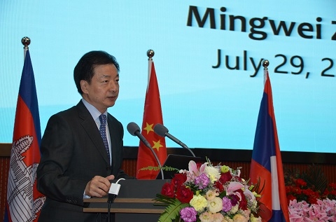 7月29日,首届澜沧江-湄公河青年创新创业训练营在青海开营。青海省委常委、宣传部部长张西明,中国翻译协会会长、中国外文出版发行事业局前局长周明伟,青海省玉树藏族自治州委书记吴德军,青海大学党委书记俞红贤,青海省委宣传部副部长胡维忠,广西财经学院校长夏飞,澜沧江-湄公河合作中国秘书处一秘潘雪松,澜湄水资源合作中心主任钟勇,青海省教育厅副厅长杨发玉,青海大学副校长曲江尚玛,青海省玉树藏族自治州委常委、宣传部部长江海梅,复旦大学校长助理陈志敏,广西财经学院副校长潘慧,广西国际文化交流中心秘书长赵克,上海市对外文化交流协会对外联络处处长许德锋,青海省杂多县委常委、宣传部部长王泽云,上海华王集团董事长陈庐一,上海朵云轩集团副总经理朱逸青,柬埔寨王国教育、青年与体育部副司长秋·管特曼等大赛指导单位、主办单位与协办单位代表出席开营仪式。应邀参会的还有来自柬埔寨、老挝、缅甸、泰国、越南的高校代表。开营仪式前,周明伟和钟勇先后作主旨演讲。