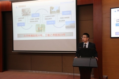 评估汇报会在金山医院核化三楼阶梯教室召开,院领导班子、相关职能科室负责人、临床科室主任及教学秘书、全科带教老师、社区医院及协同医院领导等100余人参会。金山医院院长沈辉主持会议并对评估组专家的莅临指导表示热烈欢迎和由衷感谢。强金伟副院长就医院全科专业基地建设开展工作情况,从基本条件、师资条件、过程管理、质量监控和特色亮点等五个方面做了总体汇报。评估组组长迟春花教授表示,此次评估组将根据国家卫生计生委相关文件要求及中国医师协会设立的相关评估流程,本着“以评促建,以评促改,狠抓落实”的目的,对金山医院全科临床基地和基层基地进行详细而又综合的评估,保证打分公平公正。