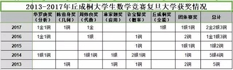 2013-2017年丘成桐大学生数学竞赛复旦大学获奖情况