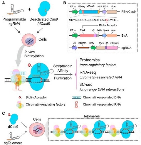 近日,德克萨斯州西南医学中心的徐剑教授课题组与复旦大学附属中山医院及生物医学研究院(IBS)周峰研究员课题组合作,首次利用了“biotinylated dCAS9”的方法建立了高分辨率,位点特异原位DNA-蛋白质以及其他元件的互作网络 。8月24日,相关研究成果以《通过dcas9原位捕捉染色质相互作用网络》(“In Situ capture of chromatin interactions by biotinylated