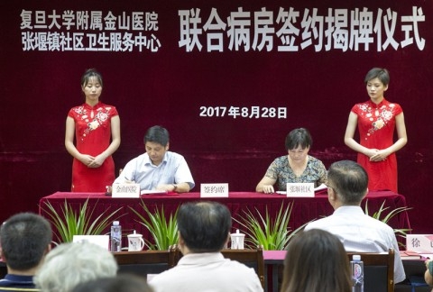 2016年4月6日,附属金山医院与金卫镇社区卫生服务中心建立了以神经康复和肿瘤临终关怀为主要诊疗方向的联合病房,经历一年多时间运行,取得了积极成果,为再建联合病房奠定了扎实基础。今年8月28日,金山医院与张堰镇社区卫生服务中心组建的以慢性呼吸系统疾病康复为主的第二家联合病房正式揭牌成立。