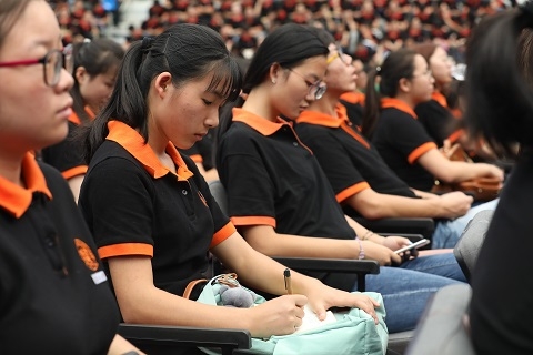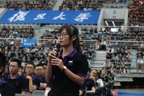 “同学们,从踏进校门的那一刻开始,你们拥有了一个新的共同的身份,三个字,知道是什么吗?”当焦扬提出这个问题后,面对3447张稚嫩面孔异口同声的回答——“复旦人”,她连赞了两次“真棒”。