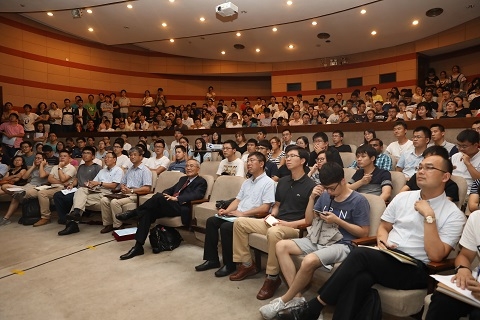 Negishi教授分享了他在过渡金属催化领域的最新研究成果。从元素周期表开始解释了过渡金属有如此高的催化活性的原因。并展示了他发展的方法学在天然产物合成中的应用,大大提到了合成的效率。Negishi认为获得重大发现需要的条件是首先要有目标和梦想,然后要为实现自己的梦想而努力,例如扎实的基础知识,好的想法以及积极行动等等。他还强调一定要用于突破自己的极限。他鼓励同学们在未知的科学领域努力登攀,在CO2催化固定等前沿领域和关键问题上实现新的突破,为整个社会的福祉做出贡献。