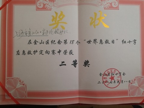 作为本次活动内容之一的应急救护定向赛,于9月8日在东方绿舟举行,金山医院受区红会邀请组队参加此项赛事,比赛共16家单位参与,经过激烈角逐,金山医院荣获二等奖。