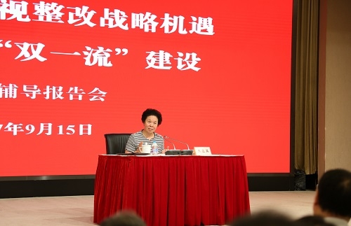 新闻中心讯 9月15日,教育部党组成员、中管高校巡视整改工作指导小组副组长王立英同志以《紧紧抓住巡视整改战略机遇,引领学校“双一流”建设》为题,为我校干部教师作深化巡视整改专题辅导报告。报告会由校党委书记焦扬主持。