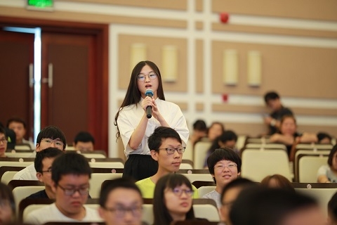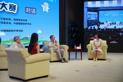 在对话交流环节,中国工程院院士潘自强、中国工程院院士胡思得、复旦大学教授沈皓三位专家以“核安全与环境”为主题与参会师生展开了充分的对话交流。嘉宾们分享了自己与核能的故事,让在场师生感受到了一代代核能人对核能的热爱及因核而生的家国情怀。