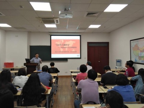 随后,吴心伯教授重点介绍了习近平总书记的大国外交战略,从海上外交、一带一路外交和对美外交三个大方面,向师生党员讲解了党和国家的布局和做法,涉及地缘政治、军队建设、金融体系发展、国际局势等各个领域,论证详实、举例生动,将师生党员的注意力和求知心完全调动起来,让所有人都觉得大有收获、意犹未尽。