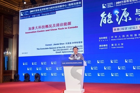 沈建磊带来“加拿大科技概况及清洁能源”的主题演讲。他介绍了加拿大的资源概况、教育体系和科研特色,以及加拿大作为北美创新中心在能源和材料方面重要的科研成果。他表示,希望推动中国和加拿大科技合作,在世界范围内促进能源材料问题的解决。