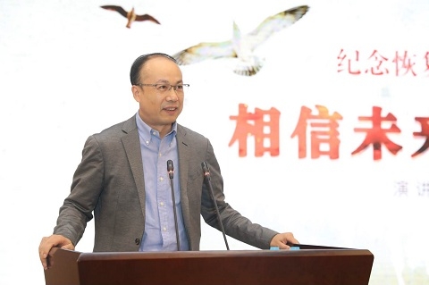 此次朱民的演讲是“纪念恢复高考40周年”光华论坛的第二场活动,由复旦大学党委学生工作部与复旦大学校友会联合主办。报告会前,常务副校长桂永浩与朱民校友亲切交流,报告会由校长助理陈志敏主持。