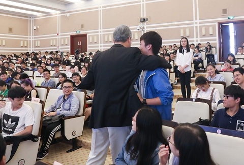 朱民还鼓励在场师生拥抱未来,锁定方向。他提出了三项人生建议:一是要把握持久学习的能力,知识积累绝非电脑上的数据,不断学习与掌握新的知识是面向未来最根本,也是最重要的素质。二是决不抱怨,决不放弃,抱怨无济于事,唯有把握当下,脚踏实地,才对得起自己,对得起这个时代。三是追求人生意义,承担自身使命,找到社会与世界的需求,以自己的努力去实现它,并在这个过程中造就你自己。