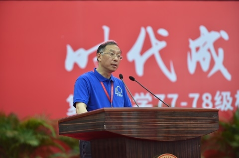 “母校欢迎你们回家!”许宁生在致辞中向77-78级校友致以诚挚的问候。他指出,复旦改变命运,而时代成就人生。离开校园后,改革开放的时代大潮成为这一代人的大舞台。40年来,校友们响应时代的召唤,做出了卓越的贡献。“校友是母校永远的名片,而复旦是校友永远的精神家园。”他希望校友们继续关注复旦、爱护复旦、支持复旦。复旦大学也将以更加饱满的精神、更加进取的状态,朝着“中国特色、世界一流”的目标不懈努力,不辜负大家的期待和厚爱。