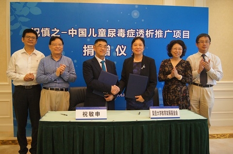 “祝慎之-中国儿童尿毒症透析推广项目”捐赠仪式也于9月28日上午举行。77级中文系校友、澳洲校友会原会长祝敏申向学校捐赠100万元,支持“祝慎之-中国儿童尿毒症透析推广项目”。复旦大学党委副书记许征、复旦大学附属儿科医院党委书记徐虹等出席捐赠仪式。