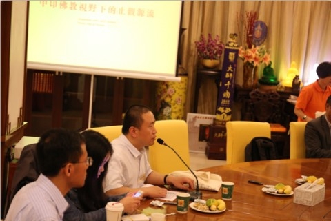 短暂的茶歇过后,圆桌讨论开始。讨论由周春阳老师起头,他与学者们就“止观”的历史源流做了深入细致的讨论,学者们踊跃参与,引经据典,各自从多学科,多视角探讨了对于“止观”等疑难概念的理解。