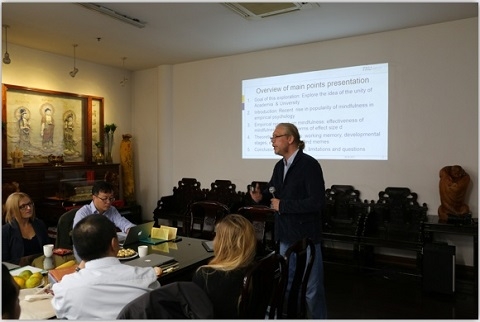 接着,汉堡大学佛教研究中心主任Michael Zimmermann教授作了主题讲演,从重构早期佛教冥想修行史入手,对此表达了方法论上的怀疑态度,并期待此次工作坊对于这一问题能够从多元视角产生更多洞见。