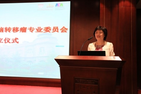 10月14日上午,上海市抗癌协会脑转移瘤专业委员会成立仪式在华山医院门诊12楼会议厅举行。上海市抗癌协会秘书长龙江宣读了同意成立脑转移瘤专委会的批复函以及专委会领导班子组成名单,中国临床肿瘤学会荣誉主席廖美琳教授、上海市科学技术协会学术部潘祺部长、上海市生物医药科技产业促进中心主任傅大煦、上海市医学会肿瘤专科分会副主任委员王理伟教授和周彩存教授、华山医院副院长邵建华共同为专委会揭牌。廖美琳、邵建华和潘祺先后致辞,对专委会的成立表示祝贺,对华山医院肿瘤科过去几年在脑转移瘤学科发展方面作出的努力给予肯定,对专委会今后的发展提出希望。首届专委会主任委员华山医院肿瘤科主任梁晓华教授发表了当选感言。