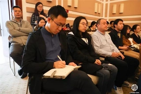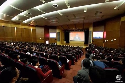 在张江校区,计算机科学技术学院、微电子学院、药学院等院系和相关行政部门100余名师生在行政楼106报告厅收看了直播。大家聚精会神听报告、全神贯注做笔记,不时热烈鼓掌。