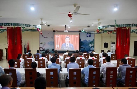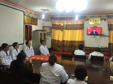 远在巴基斯坦瓜达尔港的医疗队员也组织收看直播,“昨晚认真把闹钟调到05:15,喜迎十九大的召开可不能迟到。一早没等闹钟响就兴奋地醒了。05:40大家集合完毕,全队步伐整齐地到达中港控的一楼大厅,观看中央电视台直播的中国共产党第十九次全国代表大会开幕式。当国家领导人步入会场时我们也起立并热烈鼓掌,仿佛自己也置身于现场。当国歌奏响的那一刻,心情尤其澎湃,边唱边在脑海中快速闪过中巴友好博爱医疗急救中心的筹备、调研、创建的一幕幕。在“一带一路”实现从理论设想到创新实践的重大跨越阶段,我们党员同志在瓜达尔建设中必须要发挥中流砥柱作用,在今后的中巴友好博爱医疗急救中心的工作开展中,我们一定会以实际行动做到思想上、行为上与党中央国际战略保持高度一致”。
