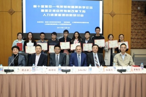 签约仪式之后,张晓清宣读“2016-2017年度复旦大学韦莱韬悦奖学金”获奖名单,论坛主办方领导和嘉宾为获奖同学颁发证书并合影留念。