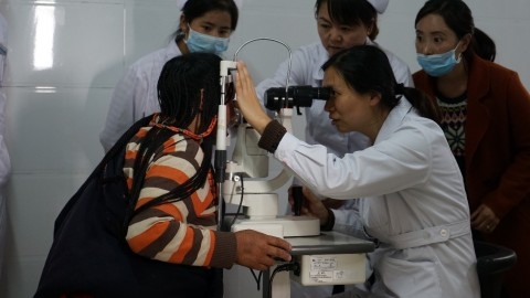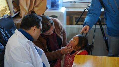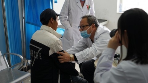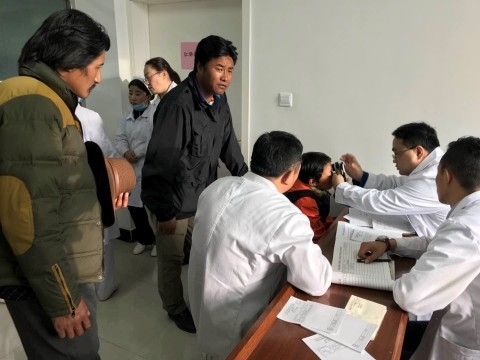 任务安排紧凑,在简短的启动和捐赠仪式后,队员们就在翻译助手的帮助下,连比带划地开始了第一站的义诊。果洛当地优质医疗资源非常匮乏,心脏、内分泌、皮肤科等在当地都没有细分的专科。肖以钦在义诊中遇到一名睫状体异物的患者,她已经忍受了四天来的病痛折磨。果洛州医院尽管有上海援建的设备,但没有会使用这些设备的人员。肖以钦为她清除异物后,特意在第二天一早趁着任务开始前,再次为她进行复诊,确保无后顾之忧。