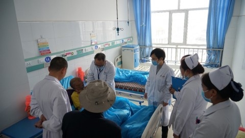 近日,由复旦大学附属华山医院心内科主任施海明教授、内分泌科副主任叶红英教授、眼科肖以钦副教授、皮肤科徐峰副教授、医务处副处长李骥教授等7人组成的华山医院青海果洛巡回医疗队,携带着在当地紧缺的药品和专科书籍,出征执行上海市卫计委指派的巡回医疗任务。