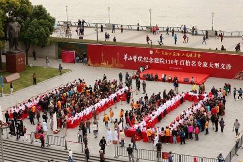 11月10日上午,为纪念建院110周年,复旦大学附属华山医院“百拾公益路,共筑健康梦”大型义诊活动在外滩陈毅广场举行。神经外科、神经内科、手外科、皮肤科、中西医结合科、感染科、抗生素研究所、肾病科、心内科、风湿科、内分泌科、消化科、肿瘤科、呼吸科、血液科、老年医学科、普外科、骨科、泌尿外科、康复医学科、运动医学科、胰腺外科、胸心外科、口腔科、眼科、五官科等近30个学科的110名华山医院专家为市民进行义诊,解决疑难问题,提供健康贴士。