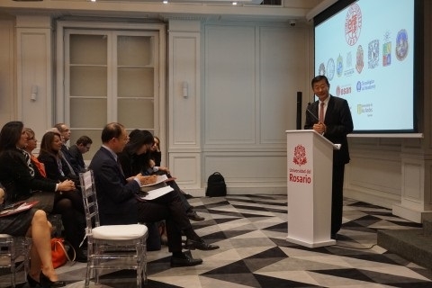 罗萨里奥大学校长José Manuel Restrepo Abondano在致辞中强调,FLAUC的建立是中拉关系更进一步的重要里程碑,联盟应当在合作框架之下积极开展各项学术交流活动。