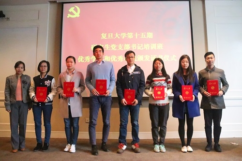 11月19日上午,“红帆训练营”复旦大学第十五期研究生党支部书记培训班结业仪式在邯郸校区光华楼东辅楼101会议室举行。党委研究生工作部相关负责同志以及86名新任研究生党支部书记参加了结业仪式。