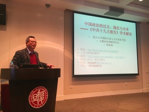12月5日下午,复旦大学高分子科学系党委在光华楼东辅楼103会议室举行学习党的十九大精神专题辅导报告活动。此次活动由复旦大学高分子科学系主任汪长春教授主持,复旦大学党的十九大精神宣讲团成员、国际关系与公共事务学院唐亚林教授受邀主讲《中国政治的过去、现在与未来——十九大报告学术解读》,高分子科学系全体教职工、学生党员代表认真参与了报告学习活动。