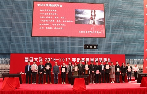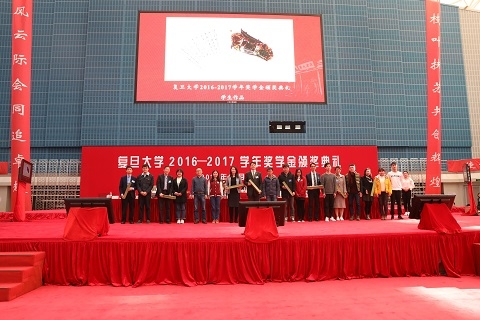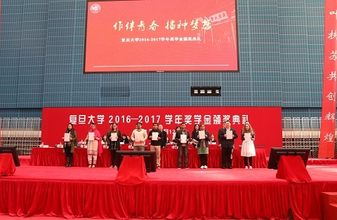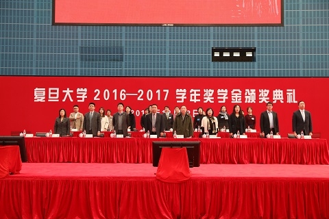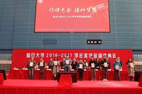 12月12日下午,“作伴青春 播种梦想——复旦大学2016-2017学年奖学金颁奖典礼”举行
