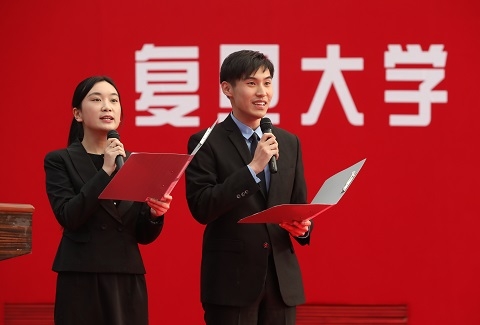 校研究生会主席王丹、学生会副主席马笑扬向参会的奖学金获得者宣读了“复旦大学‘五为四守九不要’校风学风倡议书”,引导同学们拥有正确积极健康的学习观,端正学习和科研态度、恪守学习规则和学术守则,成为优良校风学风的表率。