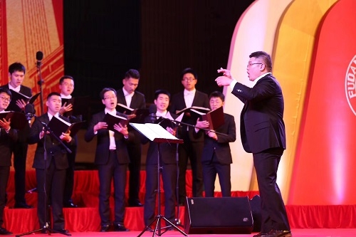 12月9日,由共青团复旦大学委员会主办的复旦大学2017年“一二·九”主题歌会决赛在正大体育馆举行。本次歌会主题为“时代新声,放歌青春”,旨在深入学习贯彻落实党的十九大精神,弘扬我校师生爱国荣校的优秀品质,展现复旦青年学子的精神风貌。当晚,上海团市委副书记刘刚宣布获奖结果,复旦大学校长许宁生为各获奖院系师生代表颁发奖杯并合影留念,复旦大学党委副书记许征作为蓝精灵校友合唱团一员参加合唱表演。