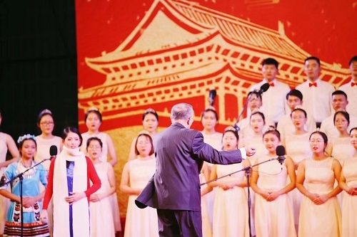 研究生队伍代表复旦大学echo合唱团表演《长城谣》和《教我如何不想他》