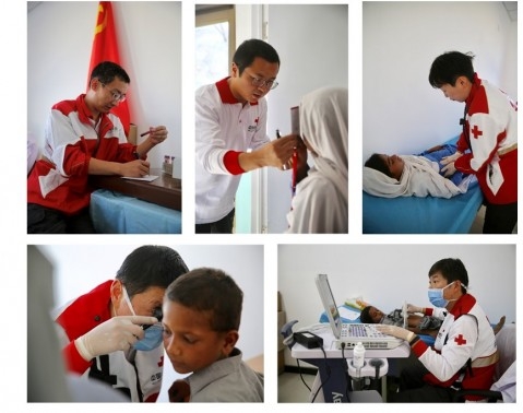 12月12日,中巴博爱医疗急救中心的中国红十字援外医疗队为20名法曲尔小学学生提供了全套体检服务。小学生们分为4组,有序完成了身高体重测量、内科听诊、外科触诊、B超、心电图、听力、视力、色觉、嗅觉、抽血等体检项目。