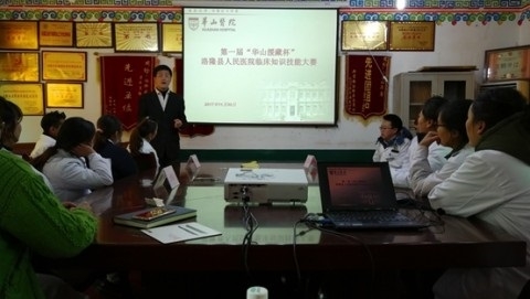 医学人才紧缺始终是制约当地医疗卫生发展水平的核心问题。自2016年与洛隆县人民医院建立对口支援合作以来,华山医院历届医疗队始终致力于为县人民医院培养医学人才。针对洛隆县人民医院缺乏取得正式医师执照的专业人员等现状,今年8月国家执业医师开考前夕,第三批援洛医疗队开展了考前动员和培训,全程陪送考员前往昌都参加考试,最终,三位考员中有两位通过考试。同时,队员们成功组织了第一届“华山援藏杯”洛隆县人民医院临床知识技能大赛,利用网络平台建立了“华山援藏医疗队云图书馆”,为当地医生明年迎考进行准备。