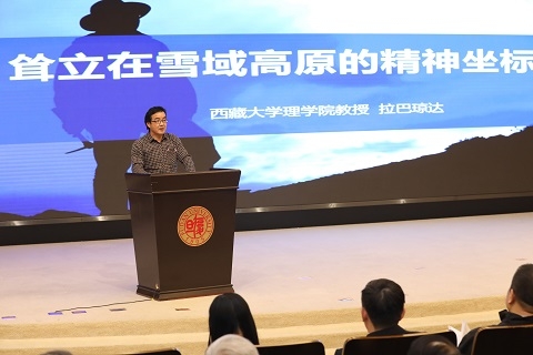 西藏大学理学院教授、钟扬的第二位藏族博士生拉琼在报告会上缅怀了恩师。“睿智、自信、渊博、幽默、热情是钟老师留给我的第一印象。”在钟扬的鼓励下,拉琼来到复旦大学读博,跟随钟扬回到西藏寻梦,改善西藏的科研水平,发掘西藏丰富的植物种子资源。“于我而言,钟老师是我人生中最重要的良师、益友,也是我事业发展的精神支柱。”