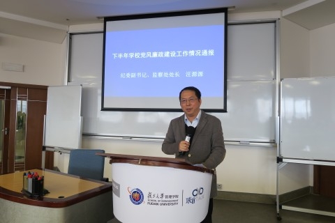 校纪委副书记、监察处处长汪源源同志通报了学校廉政风险防控机制建设工作情况,指出职能部门和直属单位检查中发现的问题,并对二级单位如何推进廉政风险防控机制建设工作提出建议。