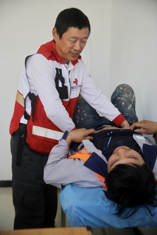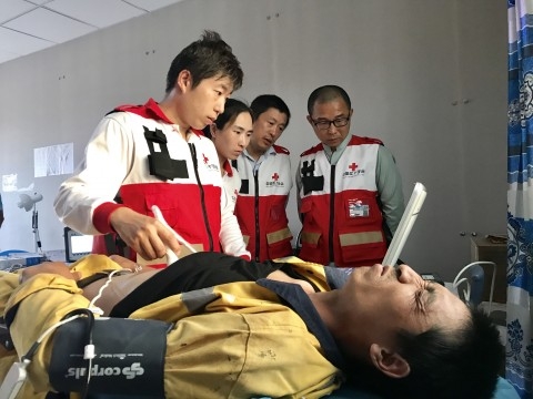 大年初二傍晚5点35分,值班机突然响起,一位工友被高空坠落后弹起的钢管击中胸腹部,疼痛难忍,需要医疗救助。附属华山医院援瓜达尔港医疗队紧急出动救护车,第一时间抵达了出事工地。经过初步查体,患者神智清楚,生命体征平稳,双侧呼吸音清晰,胸廓无反常呼吸,腹部可疑压痛、反跳痛和肌紧张。医疗队边安抚患者情绪,边将患者转运至医疗中心。医生徐思远立即给患者做了仔细的腹部超声检查,显示脏器包膜完整,未见血肿。经过24小时的观察,患者顺利出院。
