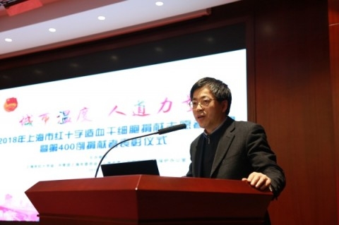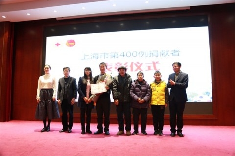 2月7日上午,由上海市红十字会、共青团上海市委员会、上海市青少年服务与权益保护办公室联合主办的“城市温度 人道力量”2018年上海市红十字造血干细胞捐献志愿者活动暨第400例捐献者表彰仪式在附属华山医院举行。上海市红十字会党组书记、常务副会长张浩亮,上海市青少年服务与权益保护办公室主任周建军,金山区副区长张娣芳,附属华山医院院长丁强、副院长马昕,“中国大陆造血干细胞捐献第一人”孙伟先生和20多年来负责干细胞采集工作的血液科副教授李佩等出席。