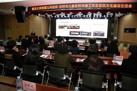 在深圳市儿童医院举行的“复旦大学附属儿科医院-深圳市儿童医院党建和医院文化建设交流会”上,徐虹介绍了附属儿科医院创建全国文明单位的历程和经验,以及按照学校“一个工程”和“五个机制”的要求,以党支部换届为契机,加强党支部建设的举措和成效。深圳市儿童医院党委书记文飞球介绍了该院党建工作以及医院文化建设的成果和经验。