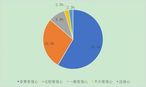 调查结果显示,受访者对中国未来五年的发展充满信心。超过九成五(95.4%)的受访者对“中国未来五年的发展”持有信心。其中,58.4%的受访者表示“非常有信心”,28.0%的受访者表示“比较有信心”,8.9%的受访者表示“一般有信心”。
