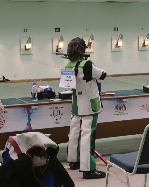 在女子10米气步枪比赛中,丁婧婕、万颖捷和来自清华大学的刘懿朔携手获得团体第八名。张益麟在男子10米气步枪比赛中奋勇拼搏,发挥较高水准。