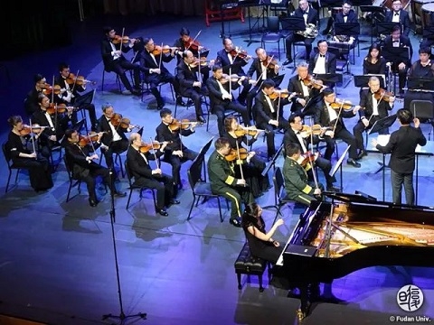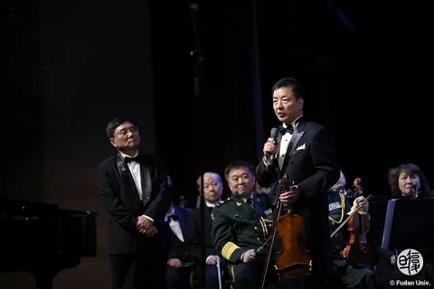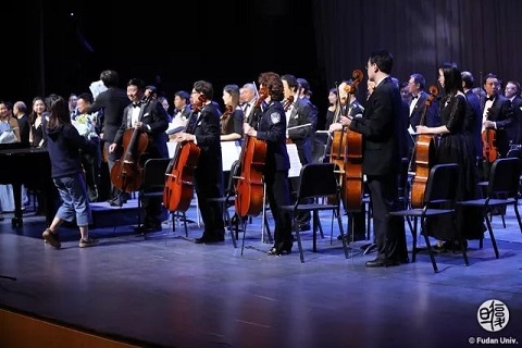新闻中心讯 3月24日,修缮一新的复旦大学相辉堂迎来了满天星业余交响乐团专场音乐会。中国国家交响乐团指挥王琳琳,中共十八届中央委员、全国政协文化文史和学习委员会副主任叶小文,原国家外文出版局局长周明伟,上海大学原副校长叶志明,解放军总医院教授、博导王玉堂,解放军总医院教授梁浩,湖北省原副省长段轮一等乐团人士为复旦大学师生带来了一场古典与流行交融的音乐盛宴。